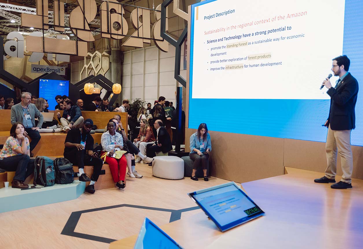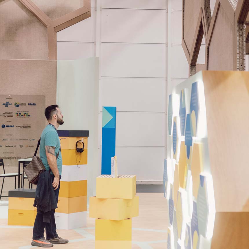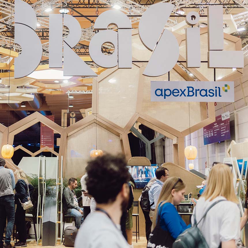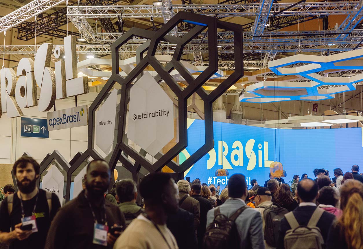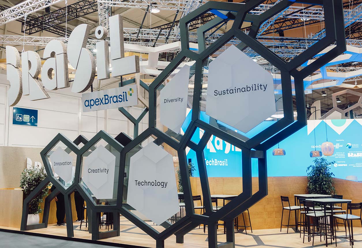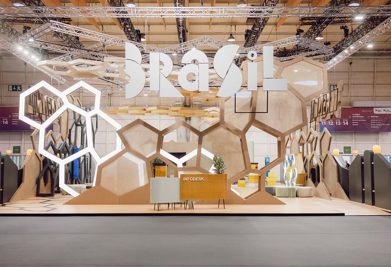 Multilem designed a 648 sqm pavilion for Apex Brasil, showcasing Brazil’s creativity, innovation, and sustainability at Web Summit 2024. The immersive space featured real beehives, the “Apex Hives” experience, and a honeycomb-shaped counter for tastings. Visitors explored an interactive mural revealing Brazil’s initiatives, enhanced with advanced technology and vibrant visuals, fostering global connections at one of the world’s largest tech events.